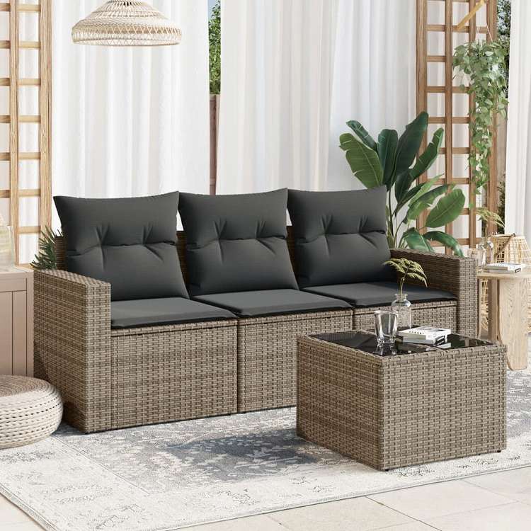 vidaXL ガーデンソファ4点セット クッション付き 灰色 ポリラタン製家具 アウトドア家具 屋外家具セット(代引不可)