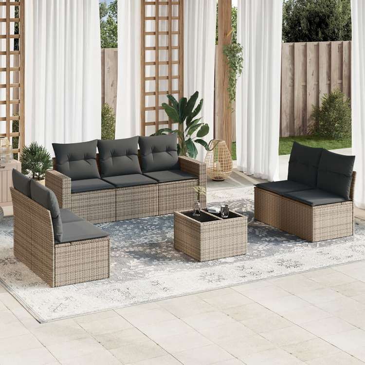 vidaXL ガーデンラウンジ8点セット クッション付き グレー ポリラタン製家具 アウトドア家具 屋外家具セット(代引不可)
