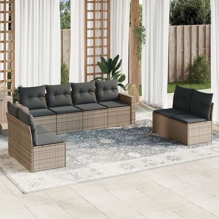 vidaXL ガーデンソファ9点セット クッション付き ポリラタン製 グレー家具 アウトドア家具 屋外家具セット(代引不可)