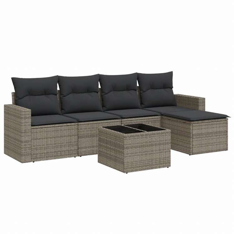 vidaXL ガーデンソファ6点セット クッション付き グレー ポリラタン製家具 アウトドア家具 屋外家具セット(代引不可)