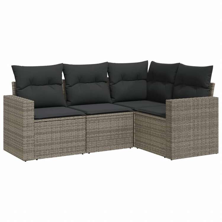 vidaXL ガーデンソファ4点セット クッション付き 灰色 ポリラタン製家具 アウトドア家具 屋外家具セット(代引不可)