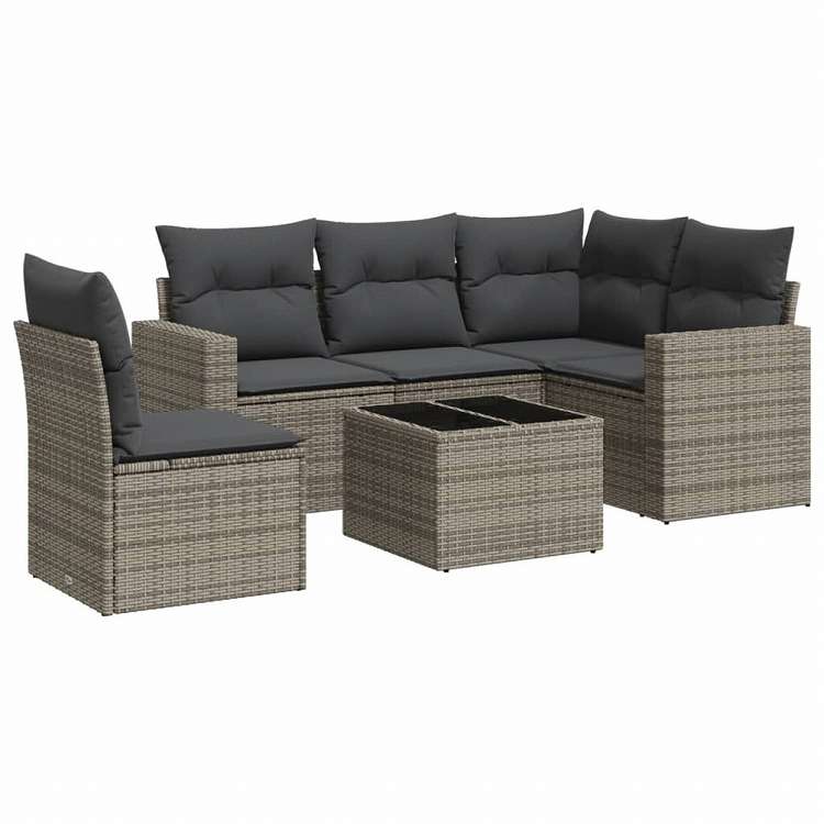 vidaXL ガーデンソファ6点セット クッション付き グレー ポリラタン製家具 アウトドア家具 屋外家具セット(代引不可)