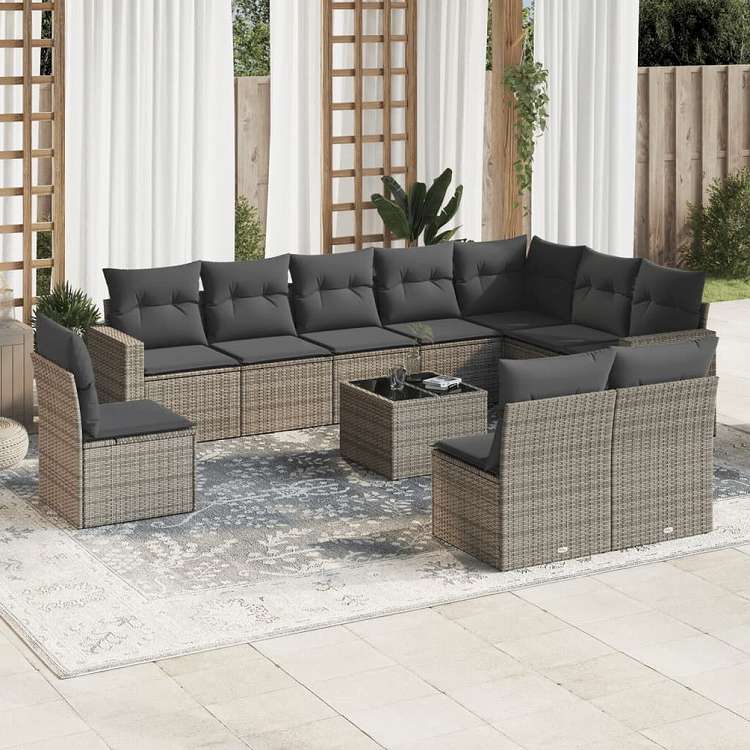 vidaXL ガーデンソファ11点セット クッション付き ポリラタン製 グレー家具 アウトドア家具 屋外家具セット(代引不可)