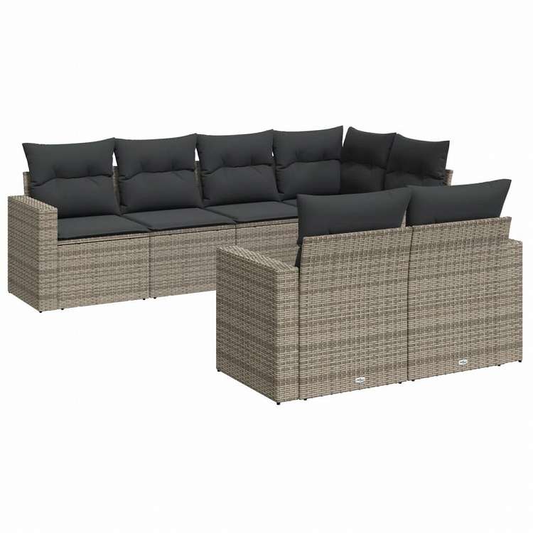 vidaXL ガーデンソファ7点セット クッション付き グレー ポリラタン家具 アウトドア家具 屋外家具セット(代引不可)