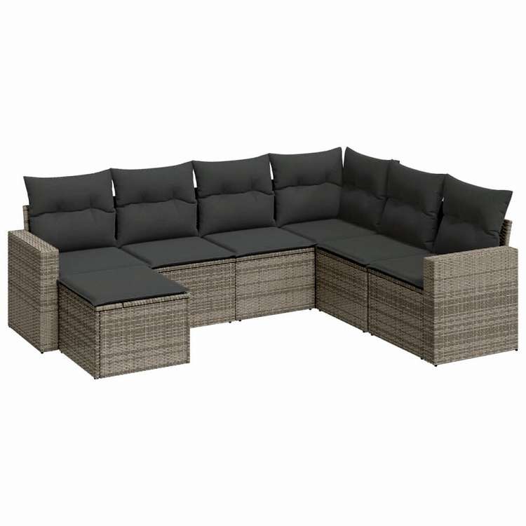 vidaXL ガーデンソファ7点セット クッション付き グレー ポリラタン家具 アウトドア家具 屋外家具セット(代引不可)