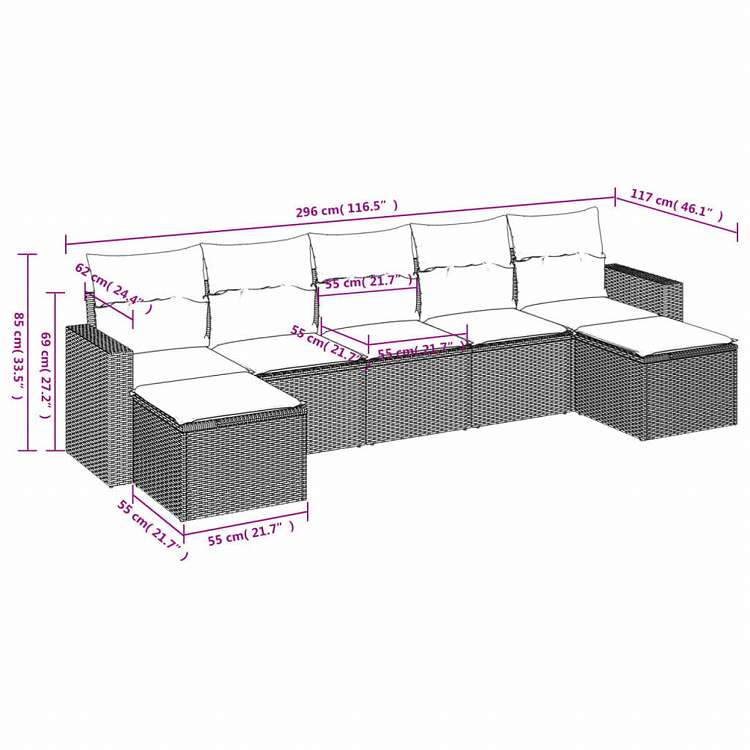 vidaXL ガーデンソファ7点セット クッション付き グレー ポリラタン家具 アウトドア家具 屋外家具セット(代引不可)