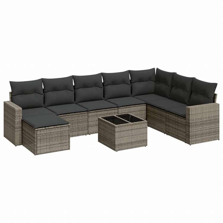 vidaXL ガーデンソファ9点セット クッション付き ポリラタン製 グレー家具 アウトドア家具 屋外家具セット(代引不可)