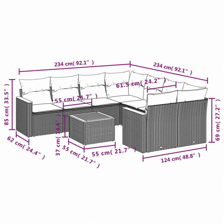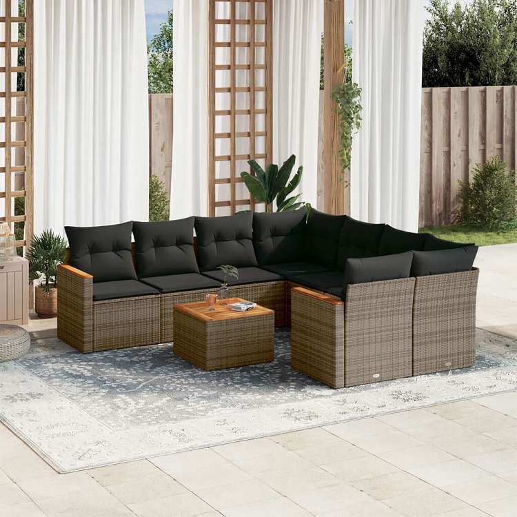 vidaXL ガーデンソファ9点セット クッション付き ポリラタン製 グレー家具 アウトドア家具 屋外家具セット(代引不可)