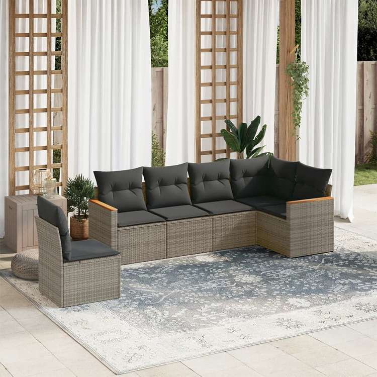 vidaXL ガーデンソファ6点セット クッション付き グレー ポリラタン製家具 アウトドア家具 屋外家具セット(代引不可)