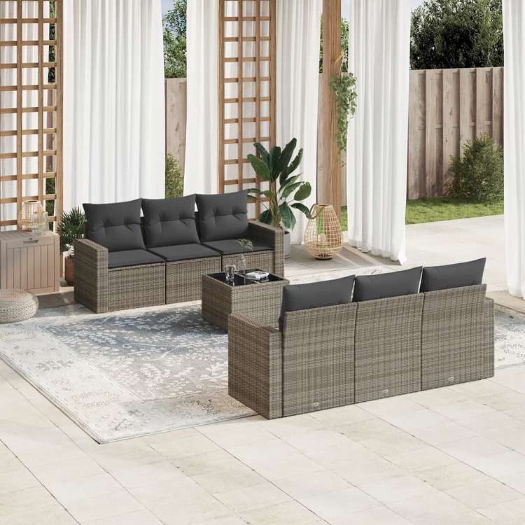 vidaXL ガーデンソファ7点セット クッション付き グレー ポリラタン家具 アウトドア家具 屋外椅子 屋外用組み合わせソファセット(代引不可)