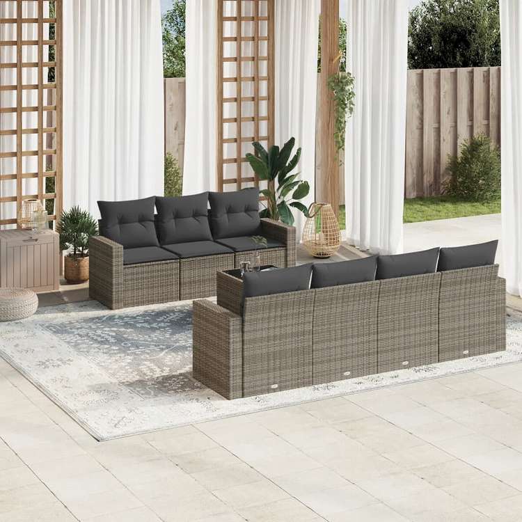 vidaXL ガーデンラウンジ8点セット クッション付き グレー ポリラタン製家具 アウトドア家具 屋外椅子 屋外用組み合わせソファセット(代引不可)