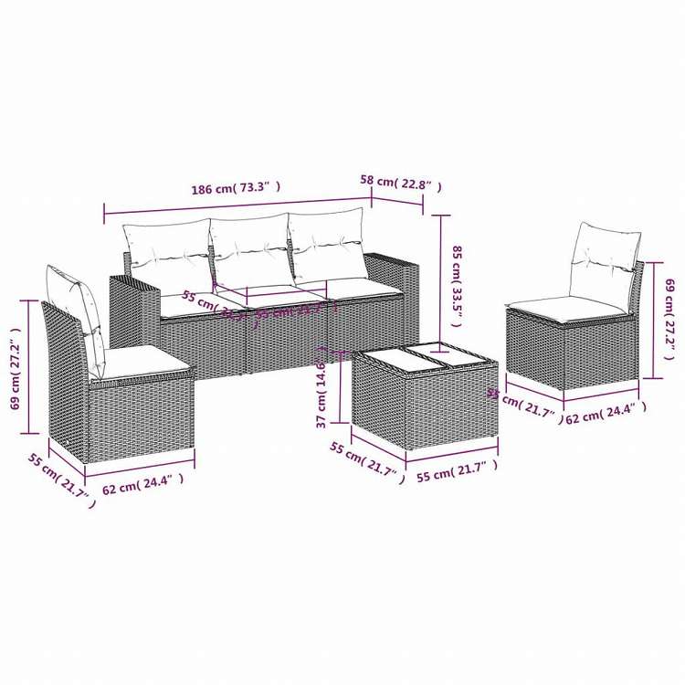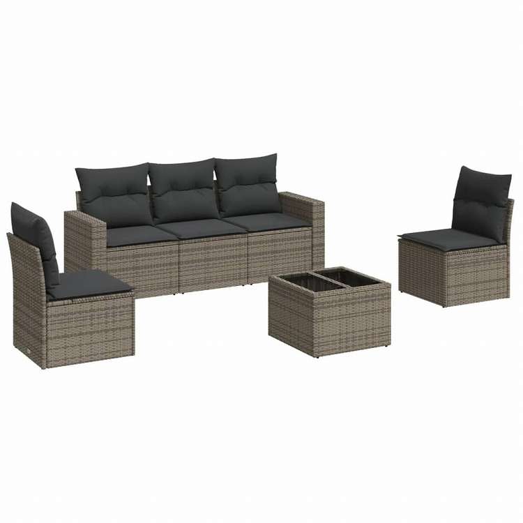 vidaXL ガーデンソファ6点セット クッション付き グレー ポリラタン製家具 アウトドア家具 屋外椅子 屋外用組み合わせソファセット(代引不可)