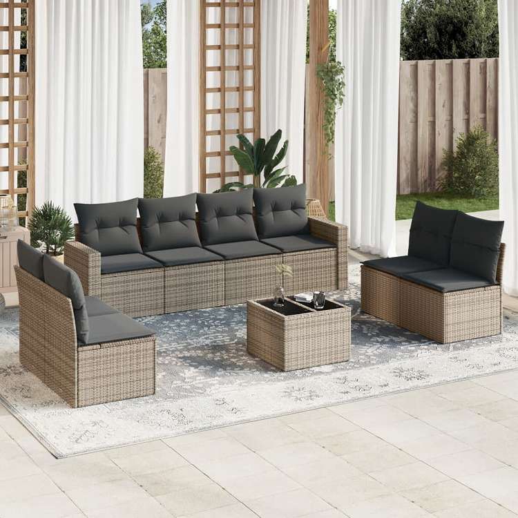 vidaXL ガーデンソファ9点セット クッション付き ポリラタン製 グレー家具 アウトドア家具 屋外椅子 屋外用組み合わせソファセット(代引不可)