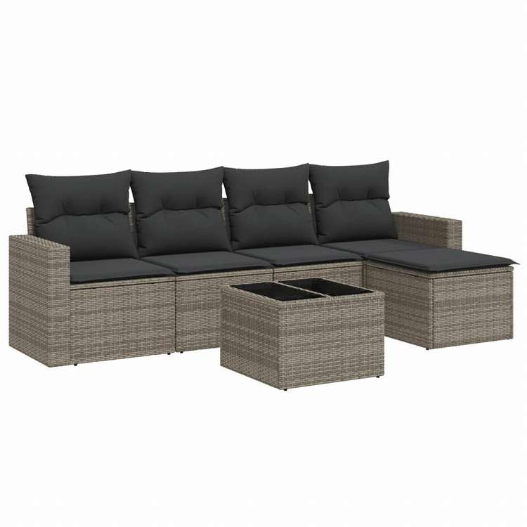 vidaXL ガーデンソファ6点セット クッション付き グレー ポリラタン製家具 アウトドア家具 屋外椅子 屋外用組み合わせソファセット(代引不可)