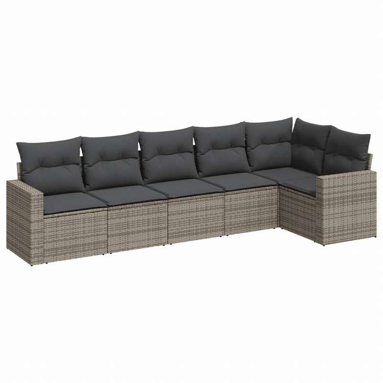 vidaXL ガーデンソファ6点セット クッション付き グレー ポリラタン製家具 アウトドア家具 屋外椅子 屋外用組み合わせソファセット(代引不可)