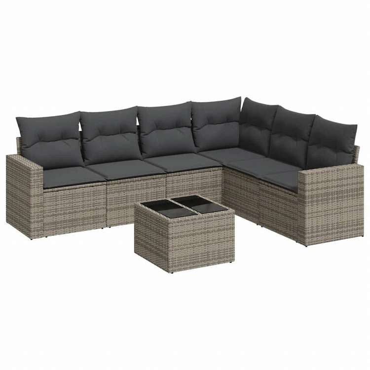 vidaXL ガーデンソファ7点セット クッション付き グレー ポリラタン家具 アウトドア家具 屋外椅子 屋外用組み合わせソファセット(代引不可)