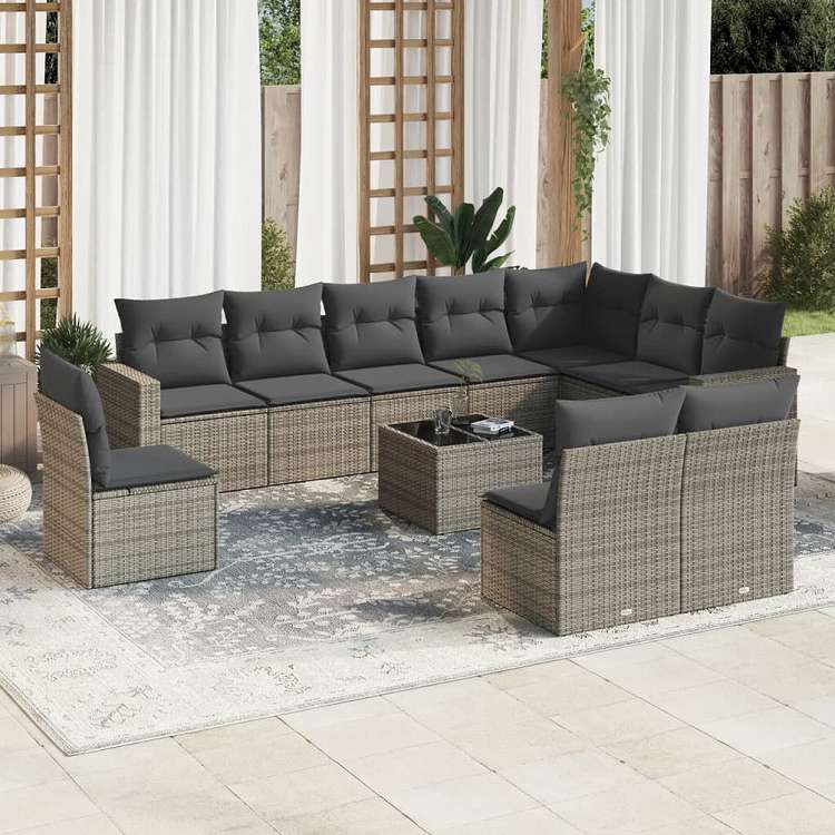 vidaXL ガーデンソファ11点セット クッション付き ポリラタン製 グレー家具 アウトドア家具 屋外椅子 屋外用組み合わせソファセット(代引不可)