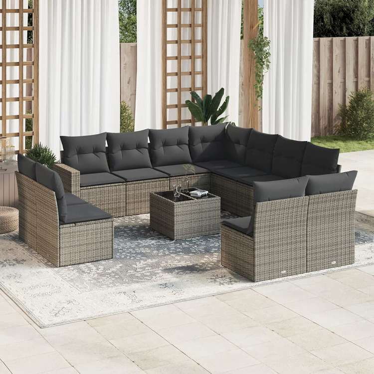 vidaXL ガーデンラウンジ12点セット クッション付き グレー ポリラタン製家具 アウトドア家具 屋外椅子 屋外用組み合わせソファセット(代引不可)