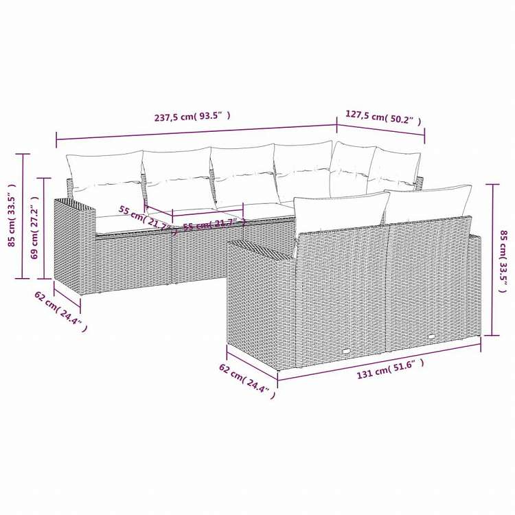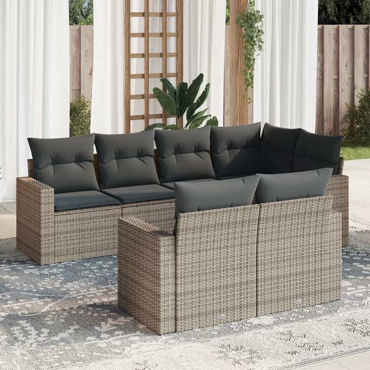 vidaXL ガーデンソファ7点セット クッション付き グレー ポリラタン家具 アウトドア家具 屋外椅子 屋外用組み合わせソファセット(代引不可)