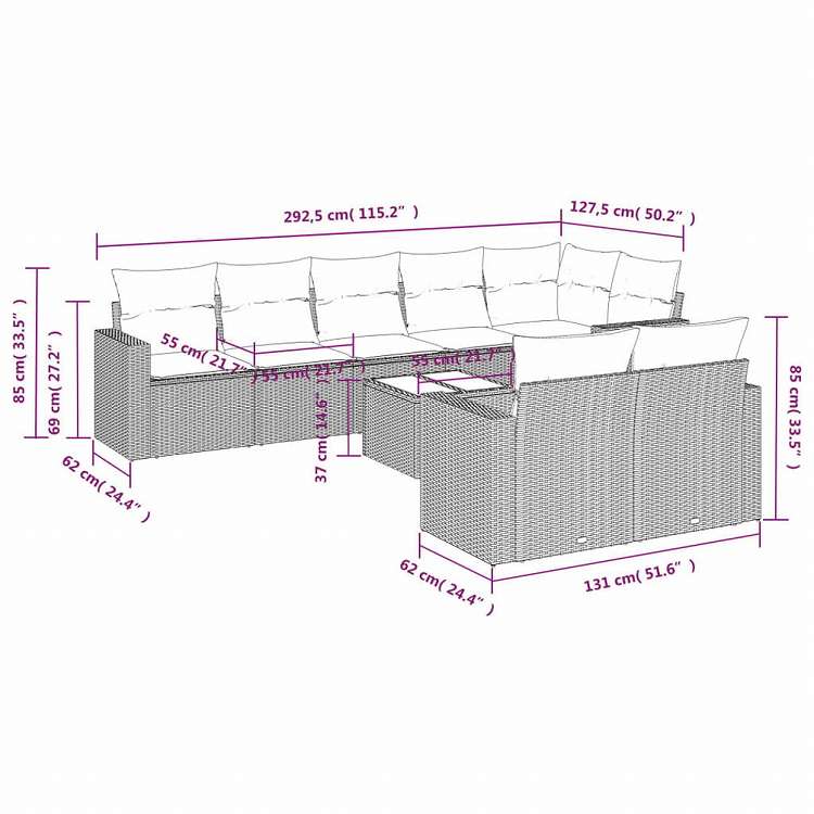 vidaXL ガーデンソファ9点セット クッション付き ポリラタン製 グレー家具 アウトドア家具 屋外椅子 屋外用組み合わせソファセット(代引不可)