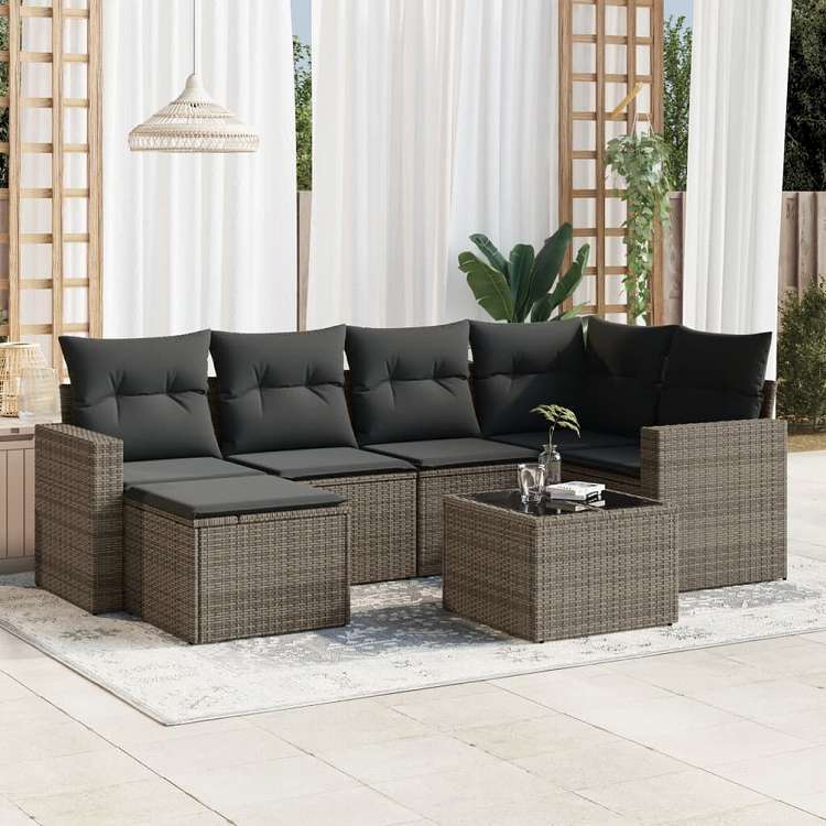 vidaXL ガーデンソファ7点セット クッション付き グレー ポリラタン家具 アウトドア家具 屋外椅子 屋外用組み合わせソファセット(代引不可)