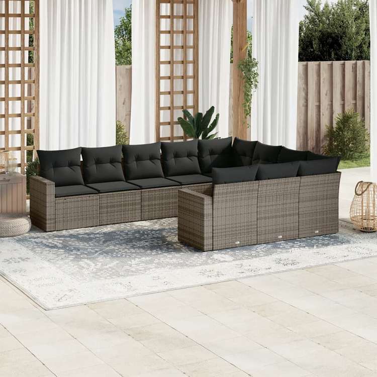 vidaXL ガーデンソファ10点セット クッション付き ポリラタン製 グレー家具 アウトドア家具 屋外椅子 屋外用組み合わせソファセット(代引不可)