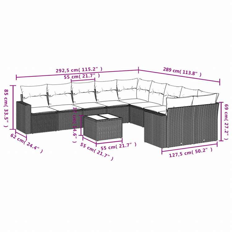 vidaXL ガーデンソファ11点セット クッション付き ポリラタン製 グレー家具 アウトドア家具 屋外椅子 屋外用組み合わせソファセット(代引不可)