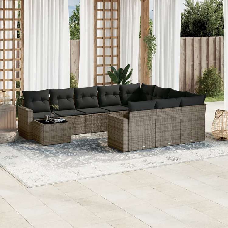 vidaXL ガーデンソファ11点セット クッション付き ポリラタン製 グレー家具 アウトドア家具 屋外椅子 屋外用組み合わせソファセット(代引不可)