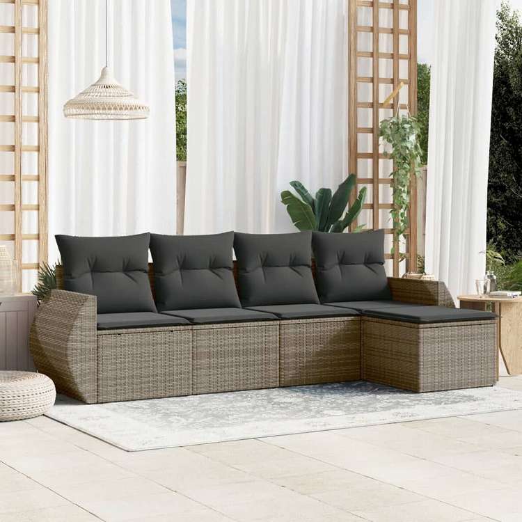 vidaXL ガーデンソファ5点セット クッション付き グレー ポリラタン製家具 アウトドア家具 屋外家具セット(代引不可)