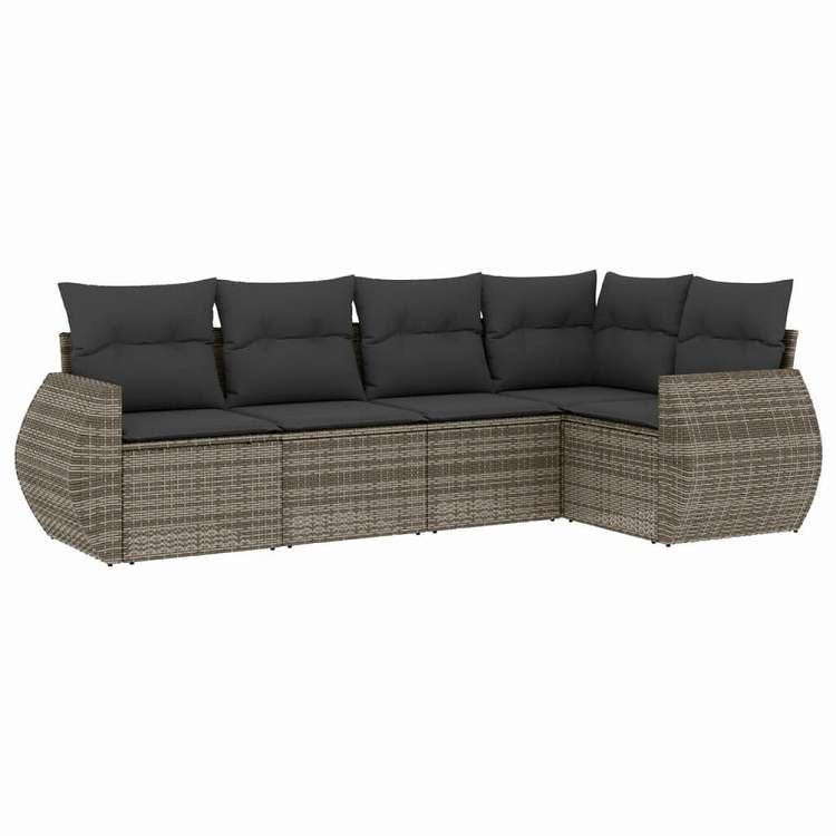 vidaXL ガーデンソファ5点セット クッション付き グレー ポリラタン製家具 アウトドア家具 屋外家具セット(代引不可)