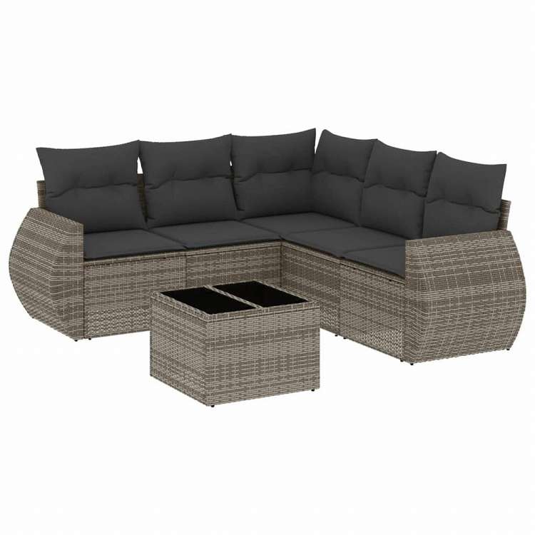 vidaXL ガーデンソファ6点セット クッション付き グレー ポリラタン製家具 アウトドア家具 屋外家具セット(代引不可)