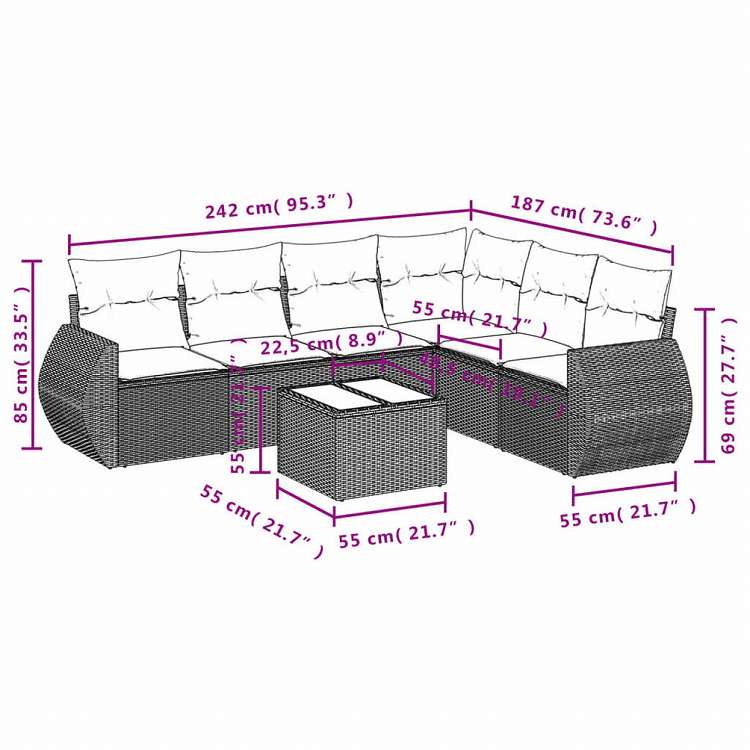 vidaXL ガーデンソファ7点セット クッション付き グレー ポリラタン家具 アウトドア家具 屋外家具セット(代引不可)