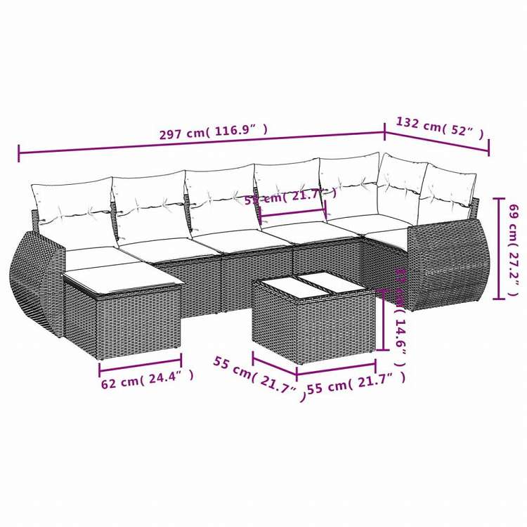 vidaXL ガーデンラウンジ8点セット クッション付き グレー ポリラタン製家具 アウトドア家具 屋外家具セット(代引不可)