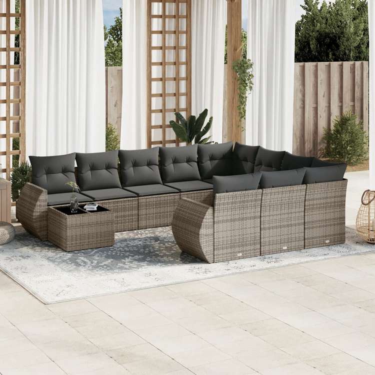vidaXL ガーデンソファ11点セット クッション付き ポリラタン製 グレー家具 アウトドア家具 屋外家具セット(代引不可)