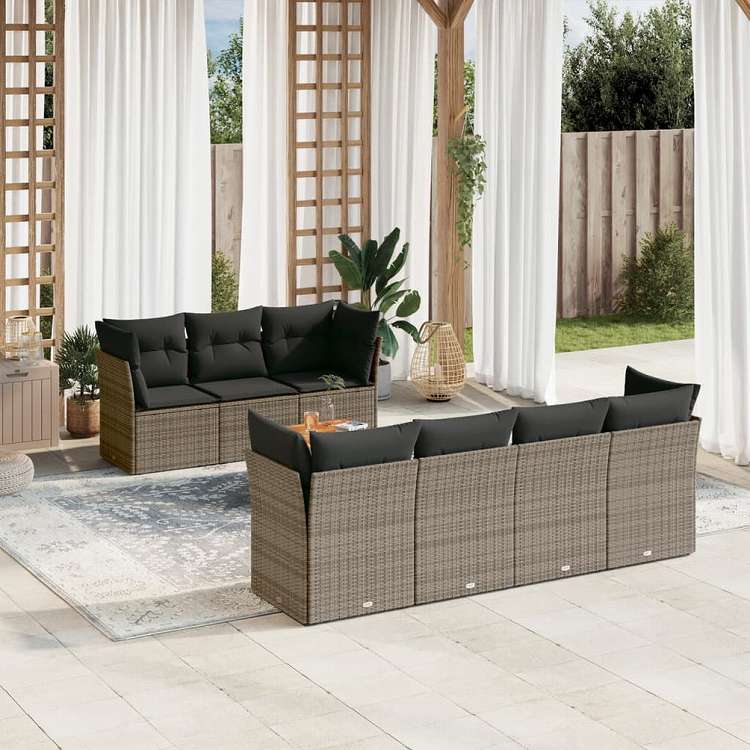vidaXL ガーデンラウンジ8点セット クッション付き グレー ポリラタン製家具 アウトドア家具 屋外家具セット(代引不可)