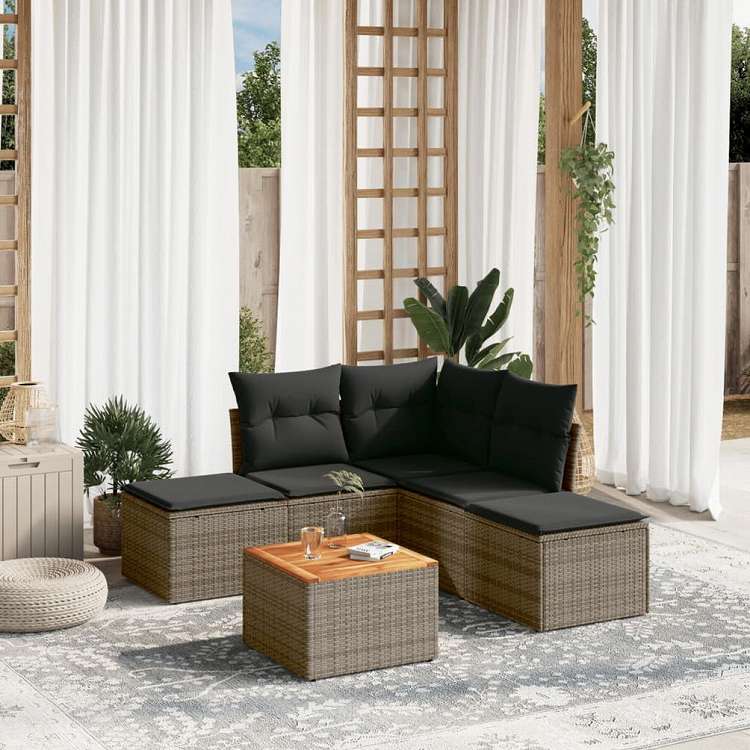vidaXL ガーデンソファ6点セット クッション付き グレー ポリラタン製家具 アウトドア家具 屋外家具セット(代引不可)