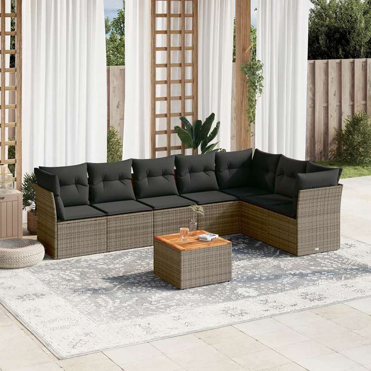 vidaXL ガーデンラウンジ8点セット クッション付き グレー ポリラタン製家具 アウトドア家具 屋外家具セット(代引不可)