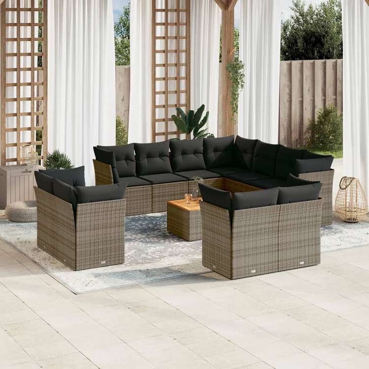 vidaXL ガーデンラウンジ12点セット クッション付き グレー ポリラタン製家具 アウトドア家具 屋外家具セット(代引不可)