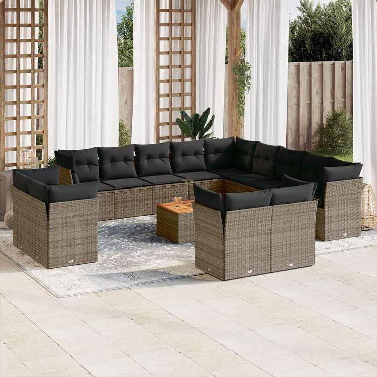 vidaXL ガーデンラウンジ14点セット クッション付き グレー ポリラタン製家具 アウトドア家具 屋外家具セット(代引不可)