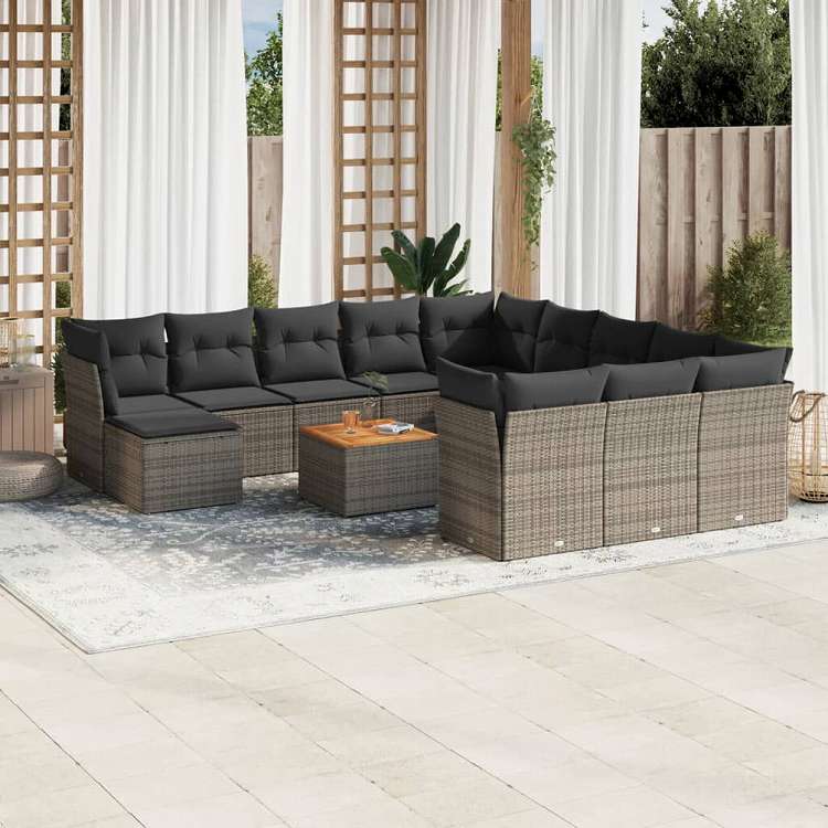 vidaXL ガーデンラウンジ13点セット クッション付き グレー ポリラタン製家具 アウトドア家具 屋外家具セット(代引不可)
