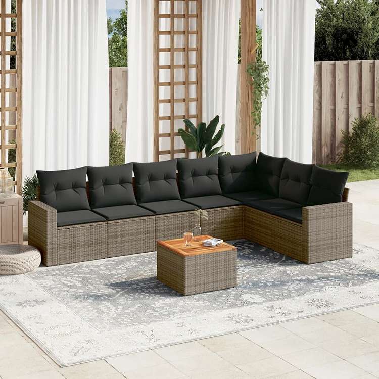 vidaXL ガーデンラウンジ8点セット クッション付き グレー ポリラタン製家具 アウトドア家具 屋外家具セット(代引不可)