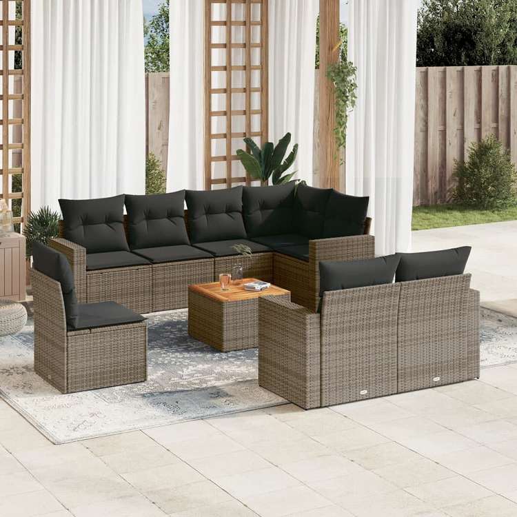 vidaXL ガーデンソファ9点セット クッション付き ポリラタン製 グレー家具 アウトドア家具 屋外家具セット(代引不可)