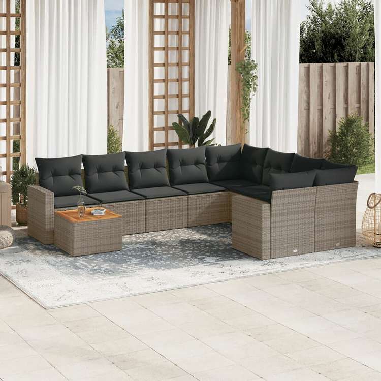vidaXL ガーデンソファ10点セット クッション付き ポリラタン製 グレー家具 アウトドア家具 屋外家具セット(代引不可)