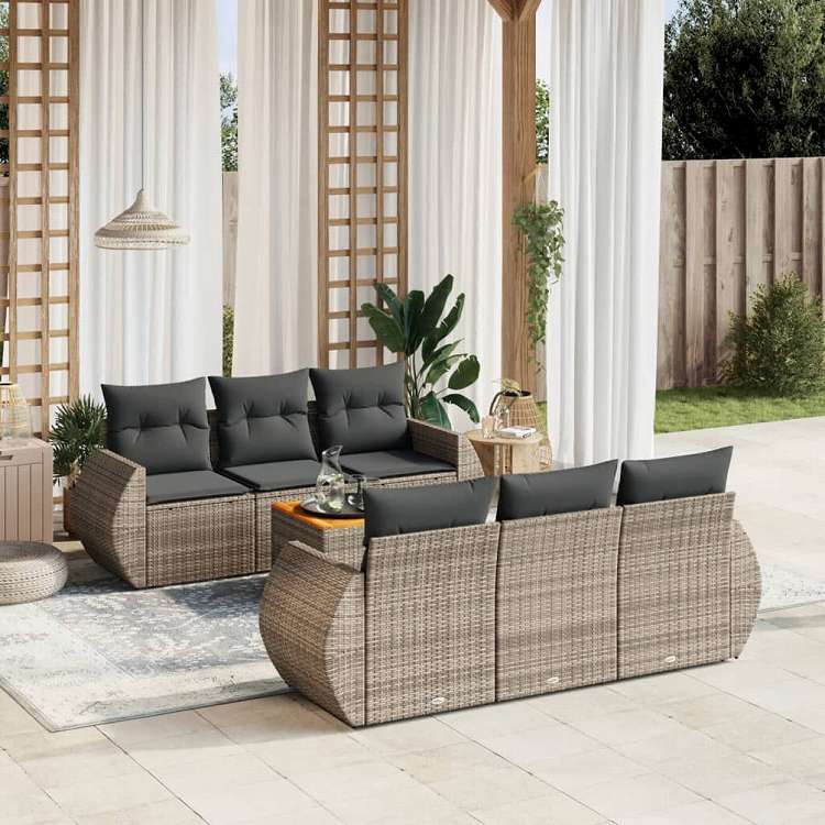 vidaXL ガーデンソファ7点セット クッション付き グレー ポリラタン家具 アウトドア家具 屋外家具セット(代引不可)