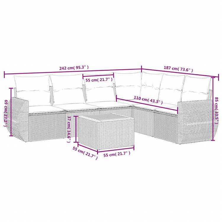 ■モジュラーデザイン: この屋外用家具セットはモジュラーデザインなので、フレキシブルに移動でき、屋外用家具の配置をカスタマイズできます。 便利情報:アウトドア家具の美しさを保つため、防水カバーをかぶせておくことを推奨します。最大耐荷重 (各座席):110 kg