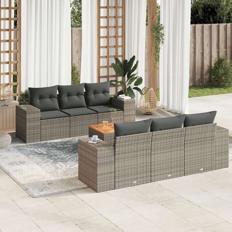 vidaXL ガーデンソファ7点セット クッション付き グレー ポリラタン家具 アウトドア家具 屋外家具セット(代引不可)