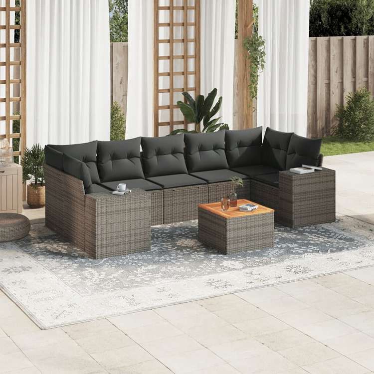 vidaXL ガーデンラウンジ8点セット クッション付き グレー ポリラタン製家具 アウトドア家具 屋外家具セット(代引不可)