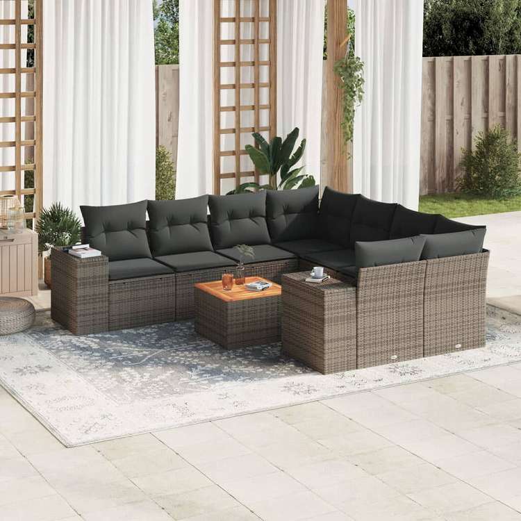 vidaXL ガーデンソファ9点セット クッション付き ポリラタン製 グレー家具 アウトドア家具 屋外家具セット(代引不可)