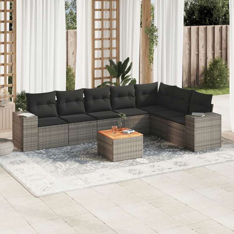 vidaXL ガーデンラウンジ8点セット クッション付き グレー ポリラタン製家具 アウトドア家具 屋外家具セット(代引不可)