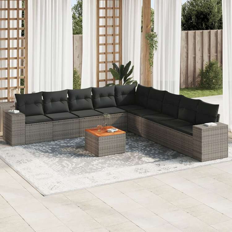 vidaXL ガーデンソファ10点セット クッション付き ポリラタン製 グレー家具 アウトドア家具 屋外家具セット(代引不可)
